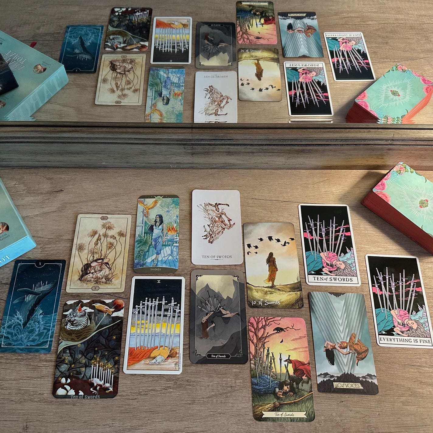 So, in celebration of this crisis moment and how it shows up differently and the same in every story, let's look at the Ten of Swords from several decks and choose the one that fits best for our story at the moment.