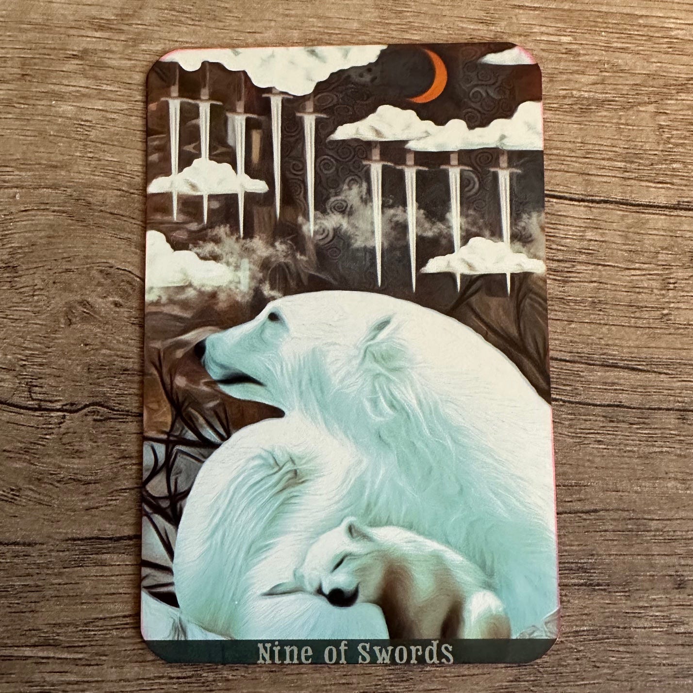 And here’s that Nine of Swords while we’re at it. I feel this one in my gut every time I look at it.